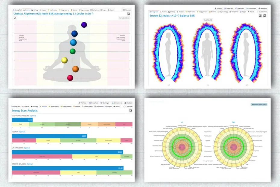 Visualisation de l’état de votre champ électromagnétique, de vos chakras et zones de stress, pour un accompagnement ciblé et sur-mesure.