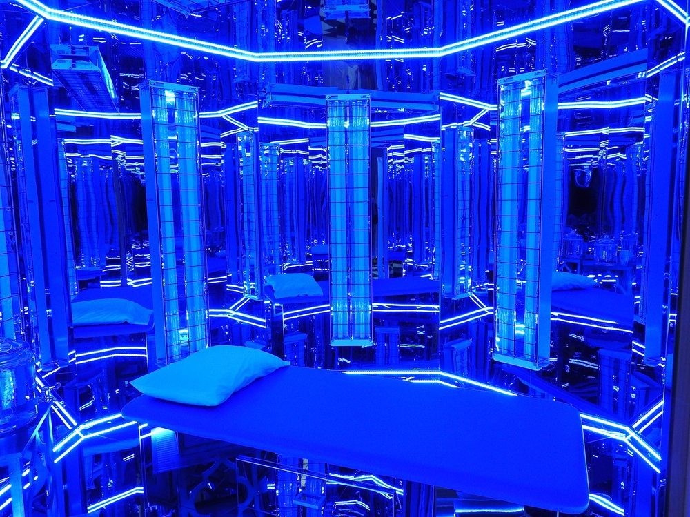 Plongez dans un espace immersif de lumière bleue, de fréquences harmonisantes et de silence profond.